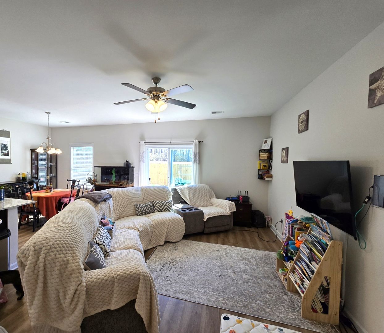 Welcome to this beautiful like new townhome offering 3 bedrooms and 2.5 baths conveniently located on a quiet cul-de-sac between Shaw AFB and town in Sumter, SC. This home offers comfortable living and low maintenance with practical outdoor space. The home includes a private wood fenced backyard and a rear patio, ideal for private outdoor enjoyment. Located within an HOA community (HOA dues paid by owner), the property permits pets upon owner approval with a non-refundable pet fee. Front lawn care provided by HOA, tenant responsible for maintaining rear lawn. Spacious bedrooms are located on the second floor. Open floor plan with easy to maintain LVP flooring throughout the first level. A partially enclosed area of the garage makes a perfect space for a gym, office, playroom or flex area with a portable AC unit that can be easily removed. If desired, the owner is willing to remove the wall to open the two car garage back up. Owner is willing to paint the pink bedroom to a neutral color if desired. This townhouse blends convenient indoor living with simple outdoor amenities in a managed neighborhood setting. Currently occupied, must have an appointment to view.