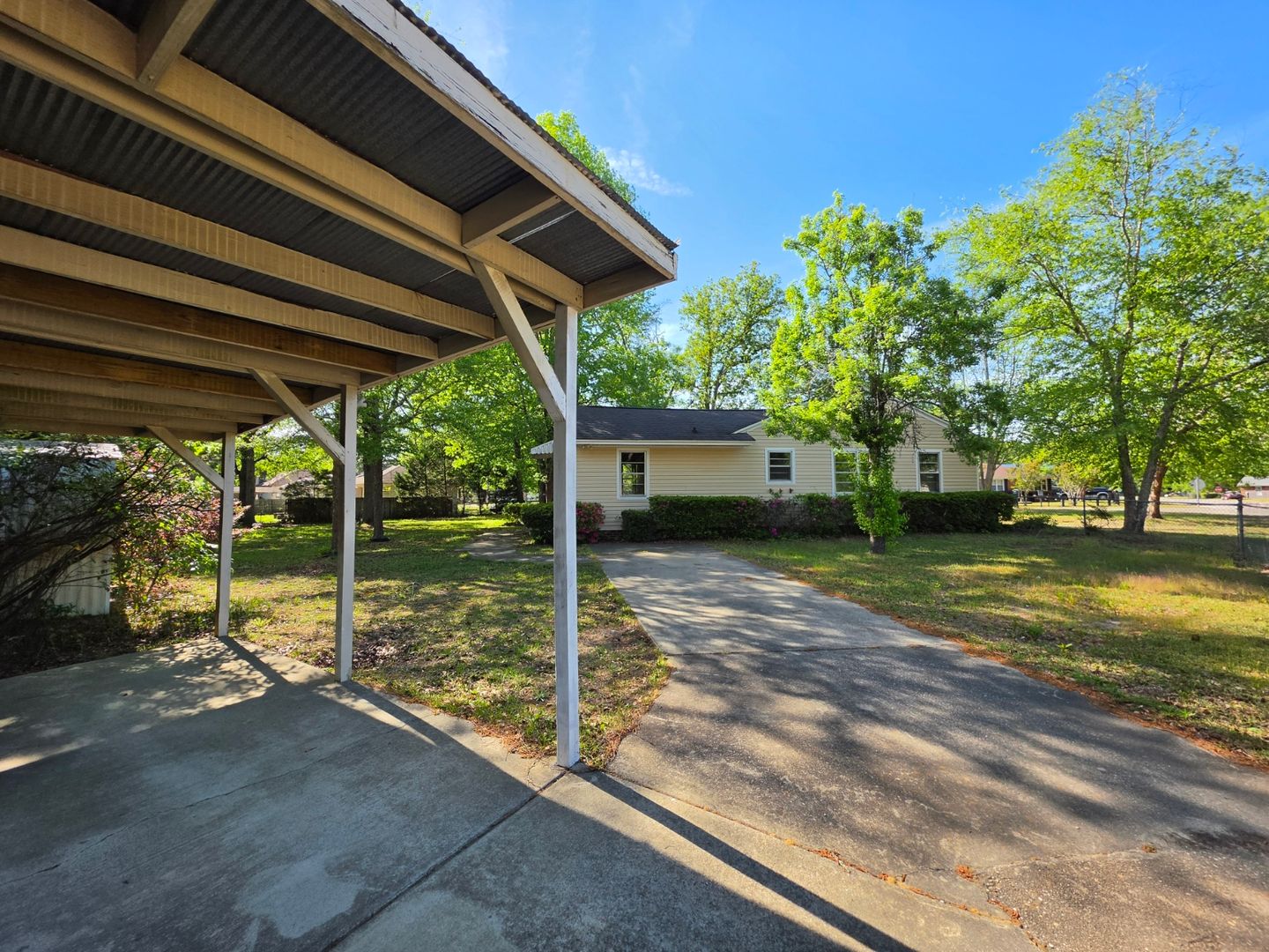 Welcome to this charming 3-bedroom, 1.5-bathroom home conveniently located in the vibrant city of Sumter, SC. This property boasts a freshly painted interior, enhancing the bright and spacious living areas. The home is equipped with ceiling fans, ensuring a comfortable atmosphere throughout the year. The large corner lot provides ample outdoor space, complemented by a fenced yard for added privacy, single detached carport and a storage building for your convenience. Inside, you'll find a dedicated laundry room, formal living room and separate family room adding to the practicality of this home. Kitchen featuring brand new appliances, breakfast bar and open to the dining area. Please note, this property maintains a strict no pets policy. Experience the perfect blend of comfort and functionality in this delightful home.